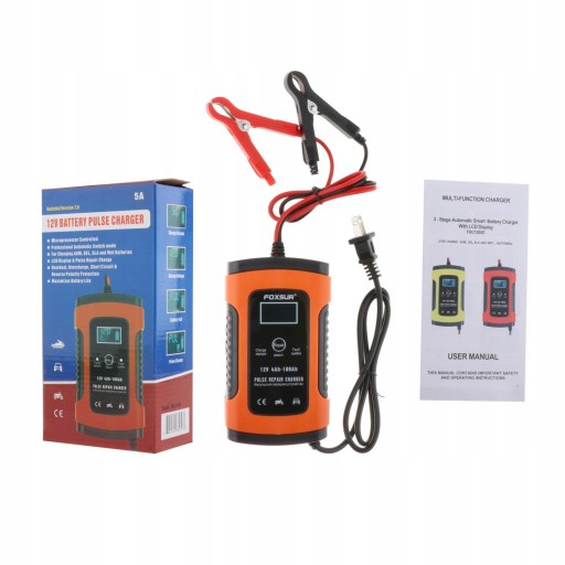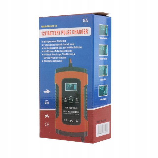 W pełni automatyczna ładowarka samochodowa 100 V do 240 V do 12 V 5A Inteligentny szybki ładowanie mokrego, kwasowo-ołowiowego cyfrowego wyświetlacza LCD