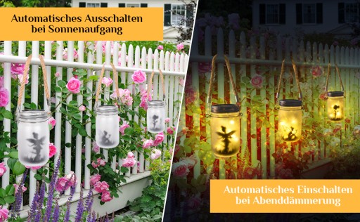 - 🌸 Różnorodne możliwości zastosowania – lampa solarna w słoiku na przetwory idealnie nadaje się do dekoracji ogrodu, tarasu, dekoracji weselnych, dekoracji domu, na karnawał, Wielkanoc, Halloween.
