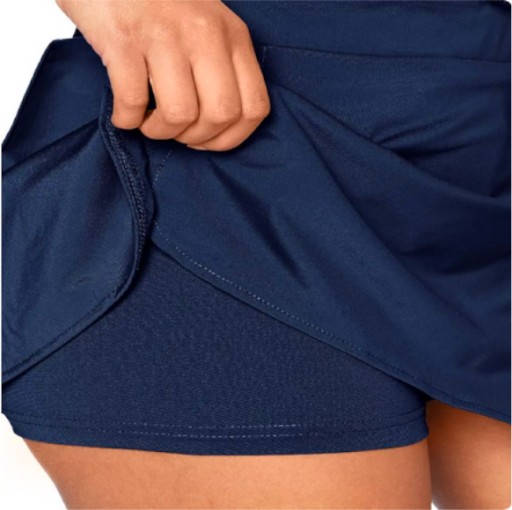 - Spódnica z wewnętrznymi spodenkami, która charakteryzuje się wygodą i elastycznym pasem dla lepszego dopasowania.