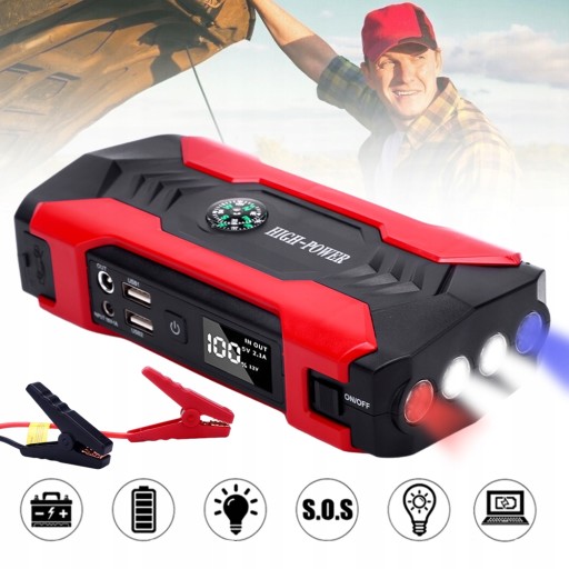 Zalety: młotek bezpieczeństwa samochodowego, wskaźnik pozostałej mocy, wskaźnik napięcia wyjściowego, oświetlenie awaryjne, kompas.