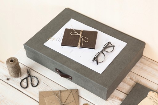 Wykonanie pudełka to solidna i trwała konstrukcja - płyta + ręcznie tłoczony laminat dają gwarancję użytkowania przez lata. Wybierając ten organizer - chronisz środowisko!