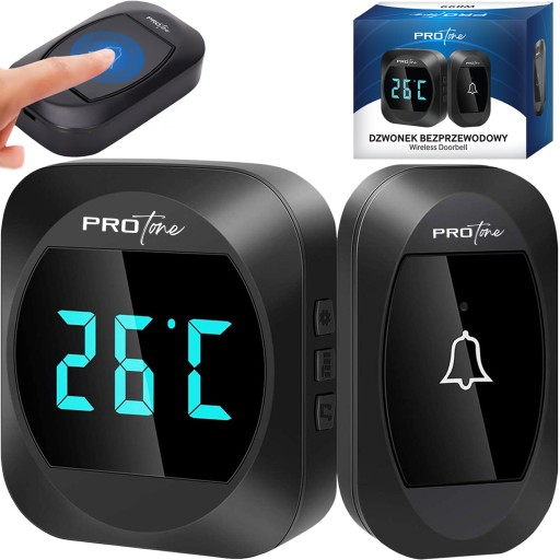Oprócz oczywistej funkcji dzwonka urządzenie pełni również rolę termometru! Odbiornik zbiera pomiary temperatury w pomieszczeniu i wyświetla je na ekranie LED więc są one zawsze dobrze widoczne.