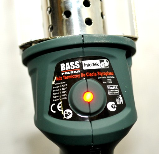 Termiczny nóż do cięcia izolacji Bass Polska jest łatwy w obsłudze – szybkie ustawienie odpowiedniej długości ostrza umożliwia wygodny suwak, potencjometr pozwala na błyskawiczne ustawienie temperatury a lampka sygnalizacyjna wskazuje gotowość do pracy.