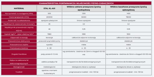 Charakterystyka: Pręty zbrojeniowe o średnicy 8 mm wykonane z najwyższej jakości kompozytu. Wytrzymalsze niż stal. Dodatkowo są 9 razy lżejsze co znacznie obniża koszty transportu.