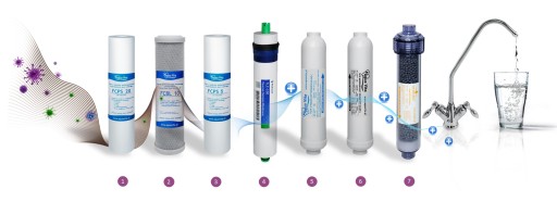 Woda przepływając przez ten system poddana jest 7 etapom filtracji: