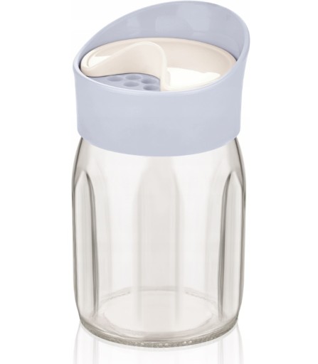 Przyprawnik posiada regulowaną nakrętkę co pozwoli na przechowywanie w nim różnego rodzaju przypraw.