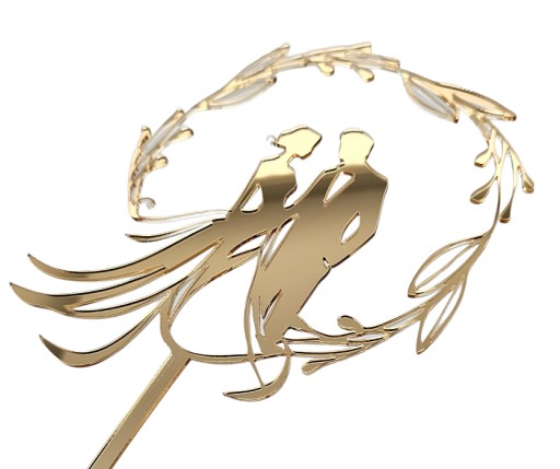 Figurka przedstawia młodą parę w dniu swojego ślubu. Została wykonana z najwyższej jakości złotego lustrzanego plexi, co nadaje jej wyjątkowego blasku i elegancji. Złote wykończenie dodaje całości luksusowego charakteru, idealnie komponując się z atmosferą ślubnej uroczystości.