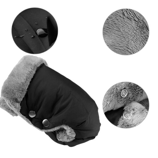 Wiatroszczelne i wodoodporne ciepłe rękawiczki: wyjątkowo gruba pluszowa podszewka oraz wodoodporna i wiatroszczelna warstwa zewnętrzna zapewniają komfort i ciepło. Rękawiczki mają guziki, które ułatwiają przymocowanie ich do wózka. Zaprojektowane, aby ułatwić życie rodzicom. Rękawice można przymocować do kierownicy przyczepki rowerowej lub wózka dziecięcego, co ułatwia szybkie wkładanie i wyciąganie rąk.