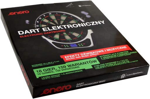 ✨Z DARTEM ELEKTRONICZNYM Z ZASILACZEM ENERO 50 CM rozegrasz turnieje nawet przez 8 osób jednocześnie, a 18 gier w tym 159 wariantów pozwoli na wybór idealnej opcji rozrywki.✨