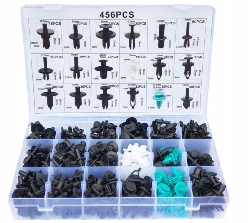 ZESTAW SPINEK KLIPSÓW KOŁKÓW UNIWERSALNE 456 SZT