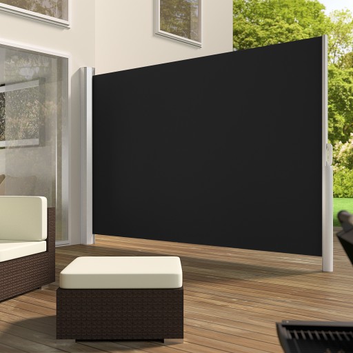 Ta piękna markiza boczna idealnie ochroni Państwa sferę prywatną, a do tego osłoni przed wiatrem. Dzięki temu Państwo i Państwa goście będą mogli cieszyć się niczym niezakłóconym spokojem w ogrodzie, na tarasie lub na balkonie. Markizę można rozłożyć w ciągu kilku minut przy pomocy automatycznego mechanizmu rozwijającego. Wytrzymała, odporna na warunki pogodowe tkanina poliestrowa jest bardzo trwała i dodatkowo wyposażona w zintegrowaną ochronę przed promieniami UV. Markizę boczną można rozwinąć do maksymalnie 3 m. Po użyciu tkanina markizy zwija się ponownie za pomocą mechanizmu sprężynowego do aluminiowej obudowy. Montaż wymaga tylko kilku kroków. Aby zamocować markizę, potrzebne są tylko każdorazowo cztery otwory w podłodze i ścianie. Śruby, kołki i uchwyty są już zawarte w zestawie.