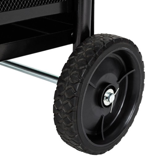 Wózek wyposażony jest w szerokie kółka, które ułatwiają transport.