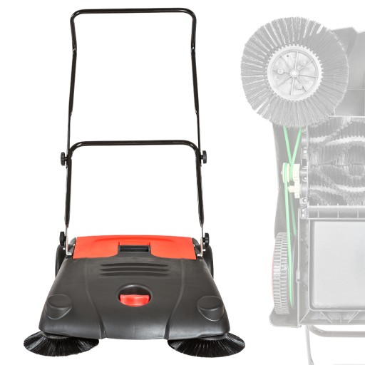 Wysokiej jakości zamiatarka o dużej szerokości zamiatania (ok. 70 cm). Aby zamiatanie było efektywne szczotki przednie podnoszą śmieci z przodu maszyny i przesuwają je w kierunku wałka szczotkującego, który przenosi je do zbiornika, a jednocześnie wymiata drobny brud pod zamiatarką.Pojemnik na odpady 20L bez żadnych większych problemów usunie zanieczyszczenia z powierzchni.
