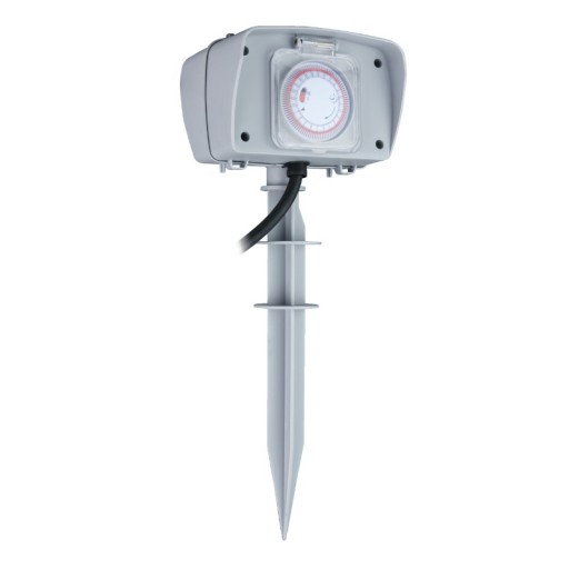 Podwójne gniazdo ogrodowe z programatorem czasowym 24 h to idealne rozwiązanie dla każdego ogrodu. Wyposażone w dwa gniazda IP44, zapewnia ochronę przed wilgocią i pyłem, co czyni je odpornym na trudne warunki atmosferyczne.
