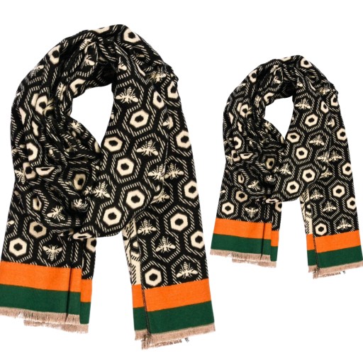 CHUSTA SZAL WISKOZA BAWEŁNA PSZCZOŁA CZARNY 2767