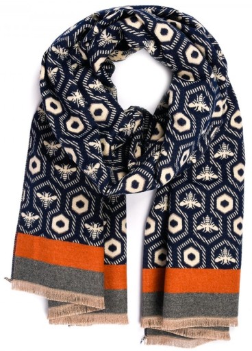 CHUSTA SZAL WISKOZA BAWEŁNA PSZCZOŁA GRANATOWA 2767