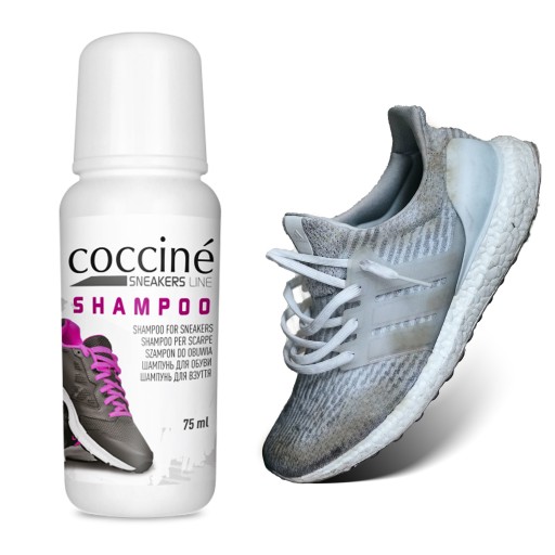 SHAMPOO SNEAKERS LINE to bezbarwny szampon do obuwia, który szybko i skutecznie czyści tekstylia, welur i zamsz. Został stworzony głównie z myślą o sportowym obuwiu, które jest intensywnie eksploatowane w różnorodnych warunkach. Cocciné Shampoo bez problemu radzi sobie z wszelkimi zabrudzeniami jak plamy, osad czy brud, który wszedł w strukturę materiału. Łatwy w użytkowaniu – zamknięty w buteleczce ze specjalną gąbeczką do aplikacji.