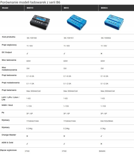 iMax B6 V2 to unowocześniona wersja najpopularniejszej ładowarki wśród użytkowników modeli RC i pierwszej w historii marki SkyRC. Ładowarka o wysokiej jakości ze sterowanym mikroprocesorem ładowaniem, rozładowaniem i regulowanym zasilaniem DC jest kompatybilna ze wszystkimi głównymi typami akumulatorów (LiPo / LiFe / Li-Ion, LiHV, NiMH, NICd, Pb).