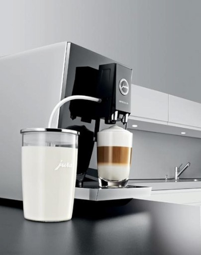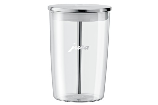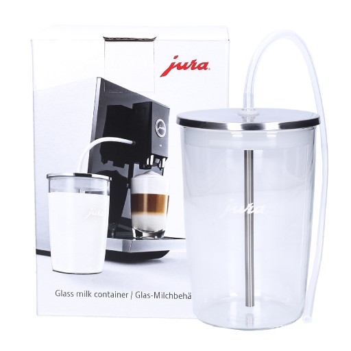 Szklany pojemnik na mleko jest idealnym rozwiązaniem dla miłośników kawowych specjałów, którzy tylko od czasu do czasu chcą się rozkoszować specjałami z dodatkiem mleka lub pianki mlecznej. Opracowany jako doskonale higieniczna alternatywa dla przechowywania mleka w oryginalnym opakowaniu (karton, plastikowa butelka). Pojemnik nawiązujący designem do urządzeń JURA wykonany jest z bezpiecznego szkła hartowanego.