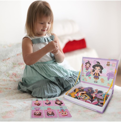 Ubieranka magnetyczna książeczka to zabawka - dla małych miłośników mody. Dziewczynka już czeka, aby ubrać się w modne tematyczne stylizacje!