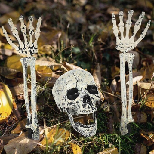 ✅ Łatwe w montażu: Ramiona szkieletowe są wyposażone w plastikowe słupki, łatwo jest wsunąć słupki w ziemię i umieścić między nimi czaszkę.