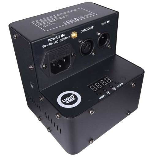 Light4Me Quadro PAR 4x15W RGBW to wysoka jakość podzespołów, staranne wykonanie i solidna, aluminiowa obudowa chroniąca całość. Sześcienna bryła reflektora posiada wygodne wcięcie mieszczące gniazdo zasilania, wejście i wyjście DMX oraz panel sterowania złożony z cyfrowego wyświetlacza i 4 przycisków. Za ich pomocą możemy ręcznie kontrolować pracę reflektora, ustawić kolor statyczny, wprowadzać zmiany w parametrach menu lub wybrać ✅ jeden z czterech interesujących nas trybów pracy jednostki: