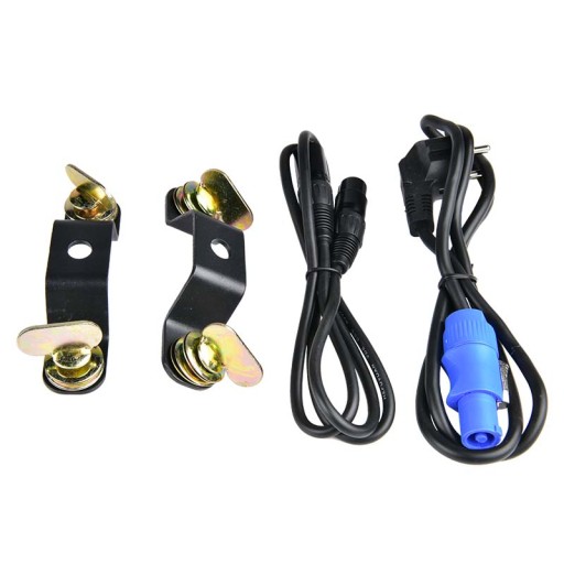 - W zestawie: 2 uchwyty montażowe, przewód DMX, przewód zasilający, instrukcja obsługi