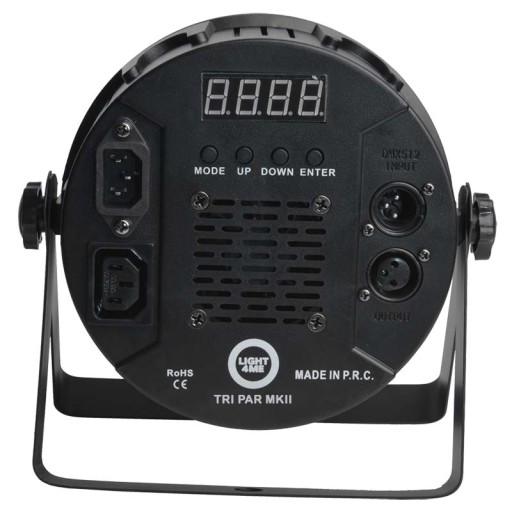 W tylnej części obudowy, oprócz panelu sterowania umieszczono gniazda zasilające IEC in/out umożliwiające podłączenie oraz przesłanie zasilania do kolejnych urządzeń, a także gniazda DMX in/out, które pozwalają na sterowanie urządzeniem oraz przesłanie sygnału ze sterownika DMX. Wbudowane wentylatory chłodzące chronią podzespoły wewnętrzne przed przegrzaniem, a zarazem oferują cichą pracę. Duża moc, solidna jakość wykonania oraz bezkonkurencyjnie niska cena tworzą z LIGHT4ME TRI PAR świetną propozycję dla zespołów, DJ-ów oraz firm eventowych, którzy cenią długą i bezawaryjną pracę.