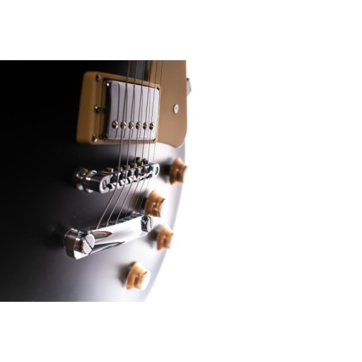 Do listy najważniejszych cech tego modelu należy dopisać efektowne matowe wykończenie. A ponadto: legendarny kształt LP z asymetrycznym wycięciem, trapezoidalne inkrustacje na podstrunnicy i charakterystyczną białą maskownicę.