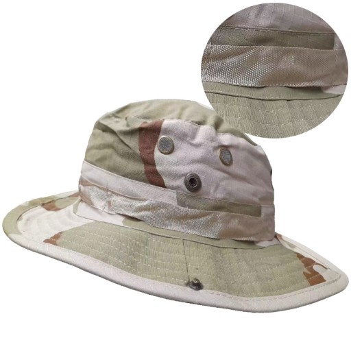 Kapelusz wojskowy wykony z bawełny i poliestru. Materiał wzmocniono siatką Rip Stop. Ponadto jest szybkoschnący, oddychający i lekki.