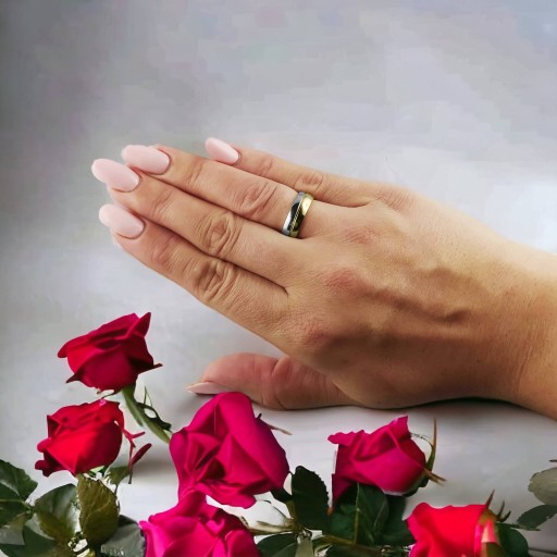 Obrączki KO26 to również wyraz wyjątkowej dbałości o detal - zarówno obrączka damską, jak i męską, zdobi eleganckie przecięcie, które oddziela kolor złoty od srebrnego. Ten kontrast nadaje im niepowtarzalnego uroku i sprawia, że są one nie tylko symbolami miłości, ale także wyjątkowym dziełem sztuki.