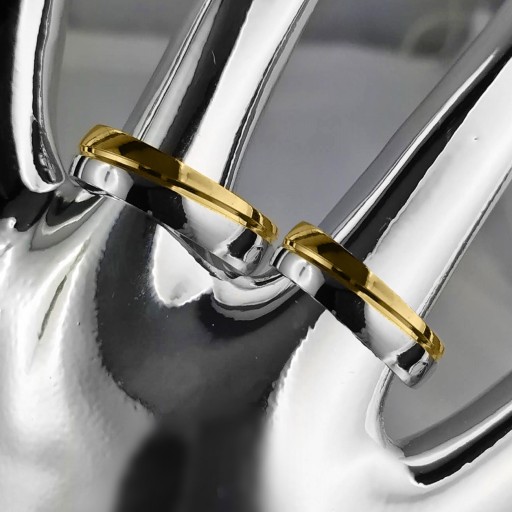 СОВРЕМЕННЫЕ ЗОЛОТО-СЕРЕБРЯНЫЕ ОБРУЧАЛЬНЫЕ КОЛЬЦА - НАБОР ДЛЯ ПАРЫ СТАЛЬНАЯ ПАРА КО26