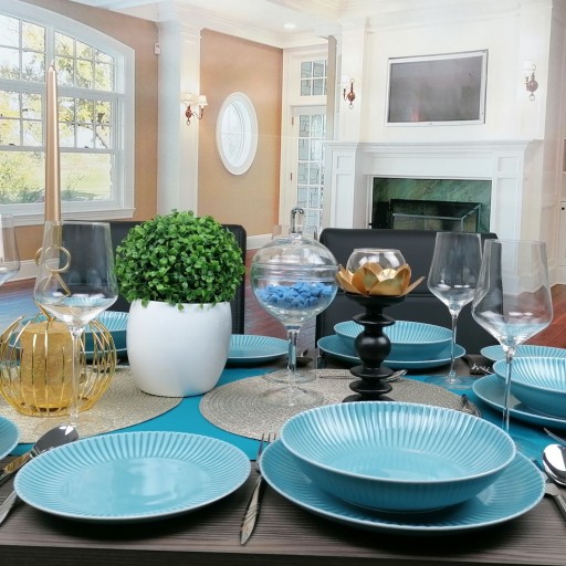 LUBIANA DAISY K6 TURKUS SERWIS OBIADOWY 24 ELEMENTY NA 6 OSÓB TALERZE+KUBKI