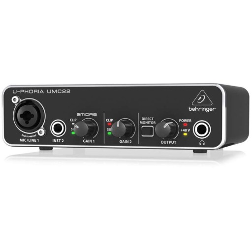 Interfejs audio Behringer UMC22 jest bardzo łatwy w obsłudze i posiada wysokiej jakości przetworniki analogowo-cyfrowe, które gwarantują doskonałą jakość dźwięku. Wbudowany preamp mikrofonowy zasilany phantom power pozwala na podłączenie mikrofonu studyjnego i nagrywanie wokali czy instrumentów akustycznych.