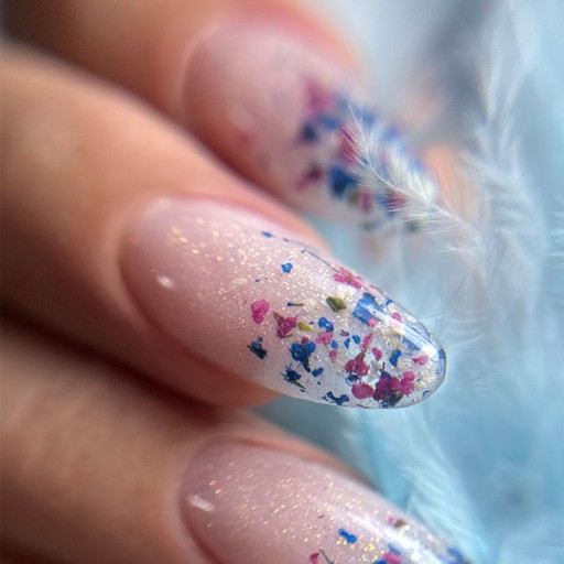 ✔️Zdobienia z suszonymi kwiatkami można ułożyć w dowolny sposób - pojedyncze kwiatki na każdym paznokciu, subtelny bukiet na jednym paznokciu, czy też delikatne liście i gałązki tworzące cały wzór na każdym paznokciu.