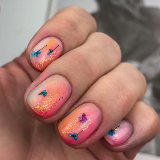 ✔️Zdobienia z suszonymi kwiatkami można ułożyć w dowolny sposób - pojedyncze kwiatki na każdym paznokciu, subtelny bukiet na jednym paznokciu, czy też delikatne liście i gałązki tworzące cały wzór na każdym paznokciu.