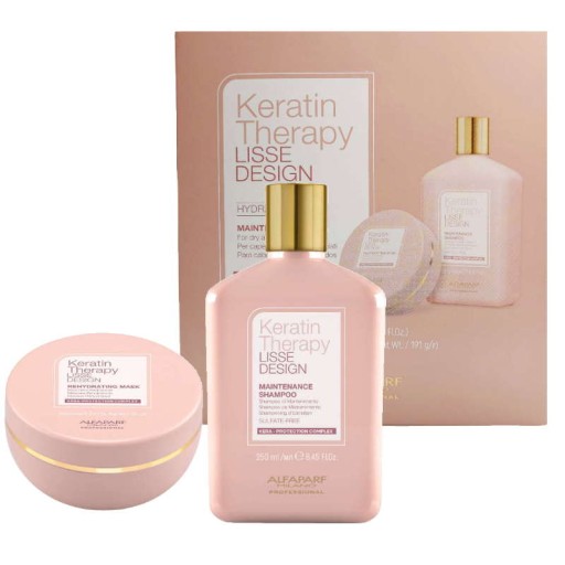 Keratynowy zestaw nawilżający szampon 250ml + maska 200ml to zestaw kosmetyków do podtrzymania wygładzenia i pielęgnacji włosów w domu.