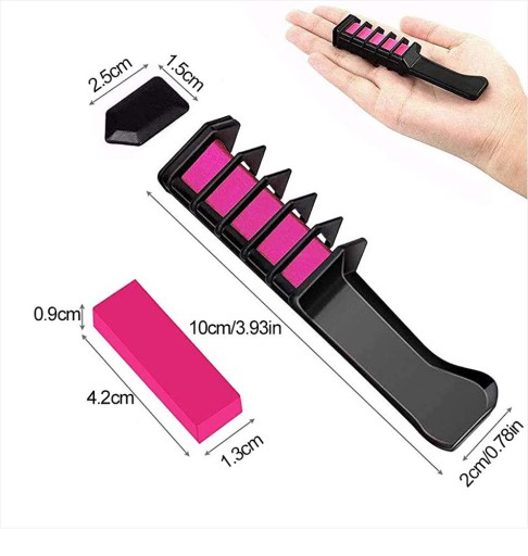 Zestaw zawiera 5 grzebieni z kredą farbującą. Wystarczy kilka sekund, żeby włosy nabrały nowych barw i stały się niepowtarzalne.