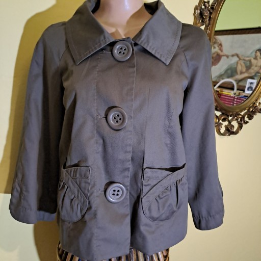 ŚWIETNY FASON,,KOLOR CIEMNY KHAKI ,ŻAKIECIK Z PODSZEWKĄ, STAN NOWA-BRAK METEK. ROZM. M ,WYM. -DŁ. -53CM SZER. POD PACHAMI 43-CM. ,DŁ. RĘKAWA OD RAM.-37CM. ZAPRASZAM.