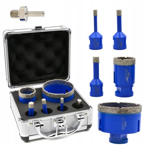 Zestaw otwornic diamentowych w rozmiarach od 6 do 68 mm. Wyposażona w gwint montażowy M14 do mocowania w szlifierkach kątowych. Idealne do wykonywania otworów w materiałach takich jak: gres, płytki ceramiczne, klinkier, glazura oraz kamień naturalny.