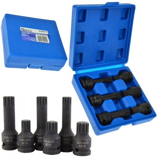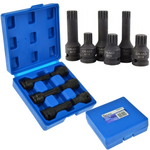 Zestaw kluczy udarowych spline stosowany w samochodach z grupy VAG, m.in VW LT, Transporter, Golf i Sharan oraz tylne zaciski hamulcowe Porsche Cayenne
