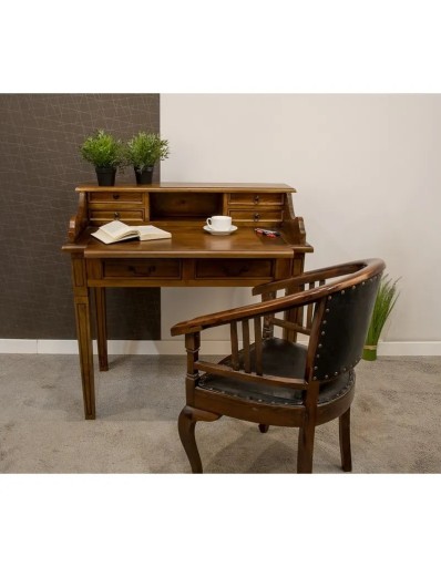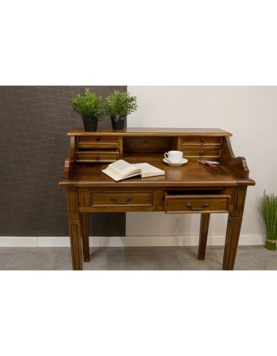 Klasyka jest zawsze na czasie. Sekretarzyk jest bardzo funkcjonalny posiada wysuwany blat oraz 6 szufladek. Mebel jes t pełno drewniany z drewna mahoniowego. Biurko poza zastosowaniem do pracy z laptopem, idealnie sprawdzi się także jako damska toaletka, mnogość szufladek zapewni miejsce na wszystkie damskie przybory upiększające.