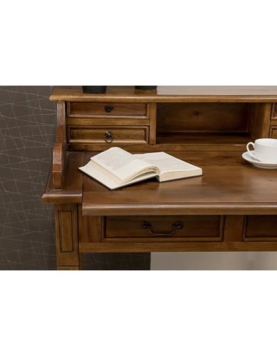 Biurko wykonane z drewna. Stylowy kolonialny design! (6 szuflad + półka) z wysuwanym blatem. Idealny do pracy z laptopem lub jako toaletka z przybornikami.