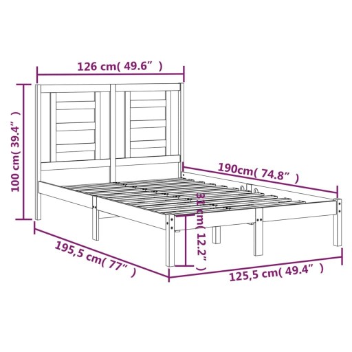 - Wymiary ramy łóżka: 195,5 x 125,5 x 31 cm (dł. x szer. x wys.)
