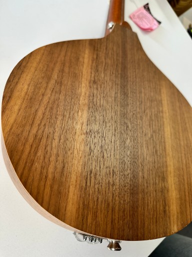Blat z litego świerku alaskańskiego, tył i boki z orzecha włoskiego. Proste satynowe wykończenie