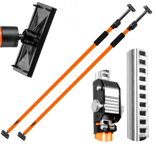 Podpora teleskopowa 160-290 cm 35-430 marki NEO to narzędzie przydatne do wspierania elementów budowlanych i konstrukcyjnych z maksymalnym obciążeniem 50 kg. Umożliwia wygodne mocowanie płyt gipsowo-kartonowych, służy także m.in. do rozpierania montowanych futryn. Podpora posiada regulowany zakres wysokości (od 160 do 290 cm). Została wyposażona w gumowe, antypoślizgowe stopki dla lepszej stabilizacji podparcia. Wygodna w użyciu, zaprojektowana z myślą o szybkim rozsuwaniu oraz z możliwością blokady dla zwiększonego bezpieczeństwa. Wytwarzana z trwałych materiałów, będzie narzędziem na wiele lat.