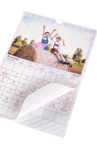 Fotokalendarz z solidną metalowa sprężynką z zawieszką.