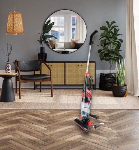 Pionowy odkurzacz cyklonowy o dużej mocy ssania umożliwia skuteczne usunięcie kurzu i nieczystości z różnego rodzaju powierzchni: podłóg drewnianych, paneli, płytek i terakoty, ścian, a także dywanów i wykładzin.