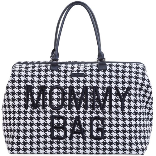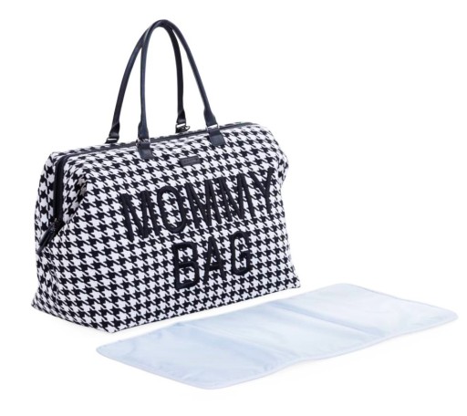 CHILDHOME TORBA MOMMY BAG DUŻA POJEMNA CZARNO-BIAŁA PEPITKA tweedowa