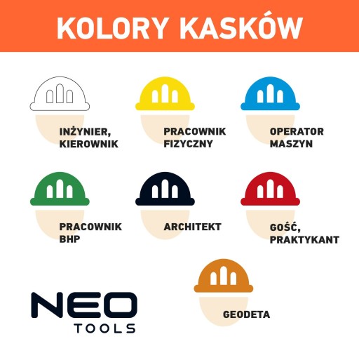 Kask przemysłowy w kolorze białym dedykowany jest kierownikom budowy oraz inspektorom nadzoru. Jego zadaniem jest minimalizowanie skutków spadających elementów oraz amortyzowanie uderzań np. kamieni, dachówek czy cegieł w trakcie wykonywania czynności służbowych.